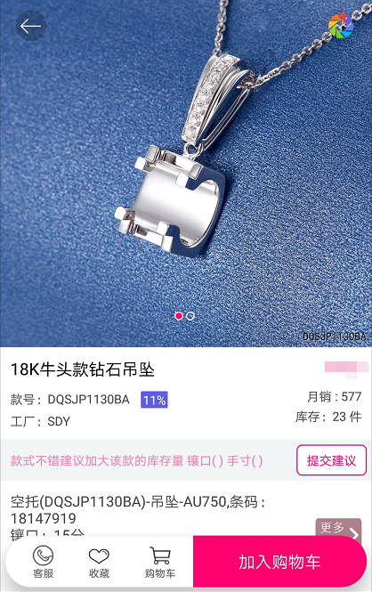 18K钻石吊坠 款号:CJPD34077BA